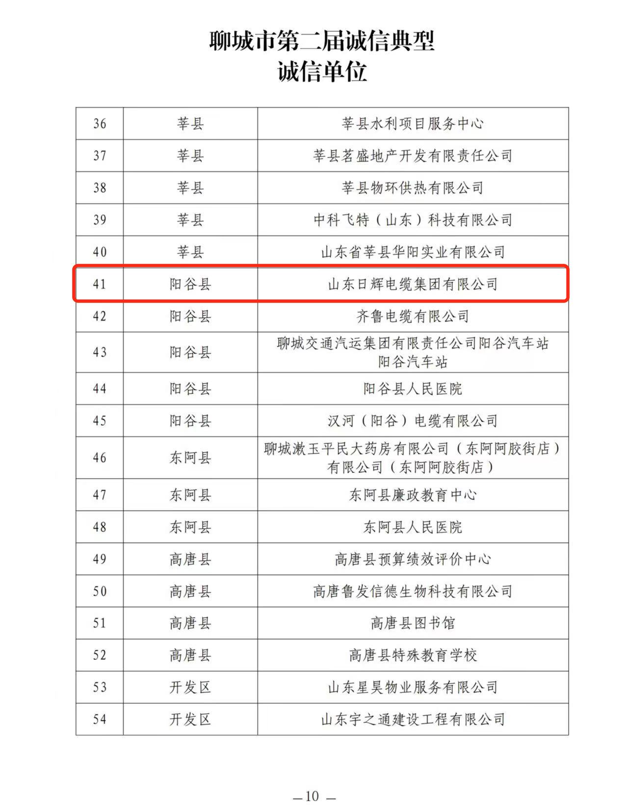 钱柜qg777深知,获评这一荣誉称号既是一份荣誉,更是一份责任。在今后的发展中,日辉电缆集团将以此为奋进动力,以诚立足,以信立企,不断践行诚信经营的责任理念,持续营造良好的信用环境、不负广大客户以及行业内外的厚爱。